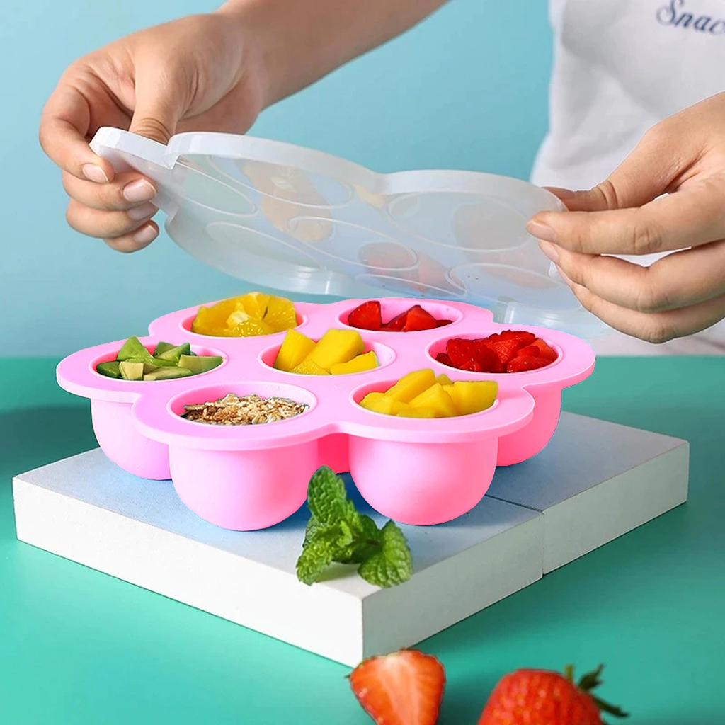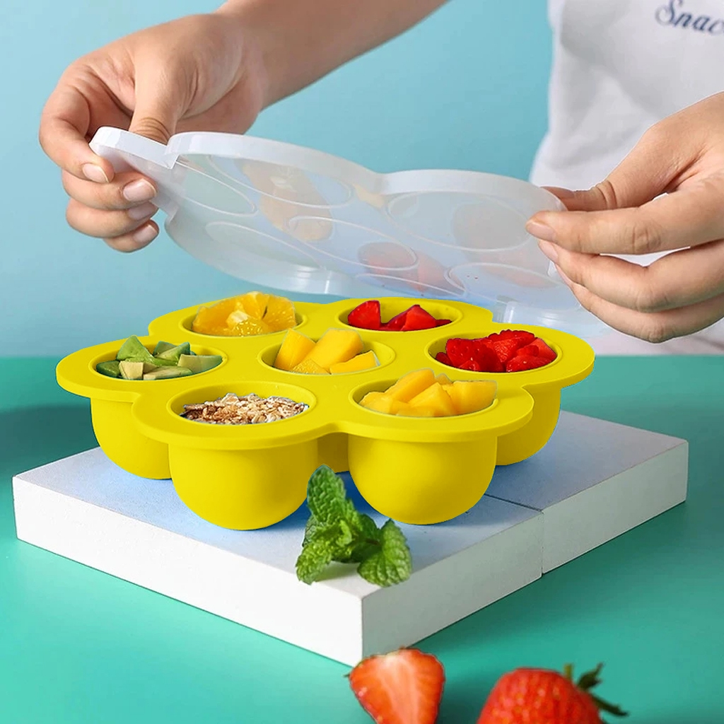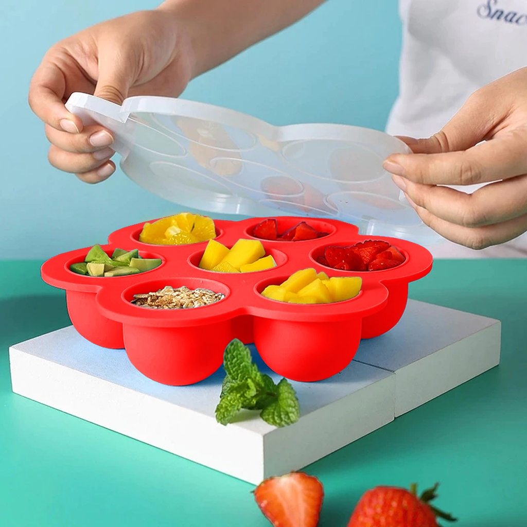 🥄 Bandeja de Silicone para Papinhas com Tampa – Armazene e Congele Papinhas com Praticidade!