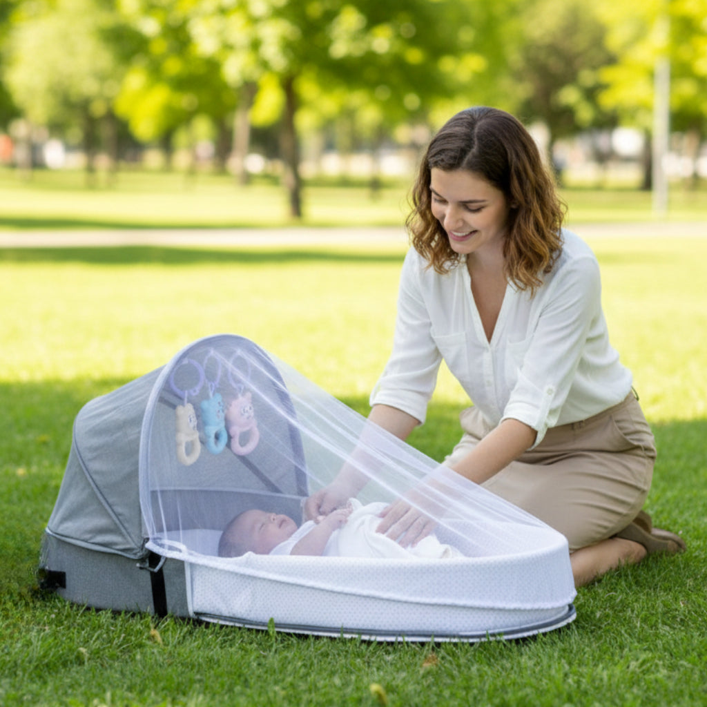 O Berço Portátil com Mosquiteiro foi desenvolvido para oferecer ao seu bebê um ambiente seguro, confortável e protegido em qualquer lugar. Ideal para viagens, praia, parque, camping, casa de parentes e até uso diário na sala ele mantém o pequeno longe de mosquitos, insetos e exposição excessiva ao sol.