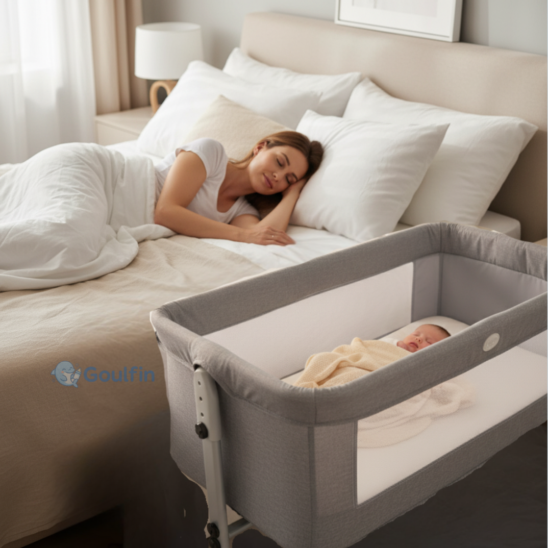 Berço Portátil 3 em 1 Goulfin – Conforto, Versatilidade e Segurança no Soninho do Bebê 💙