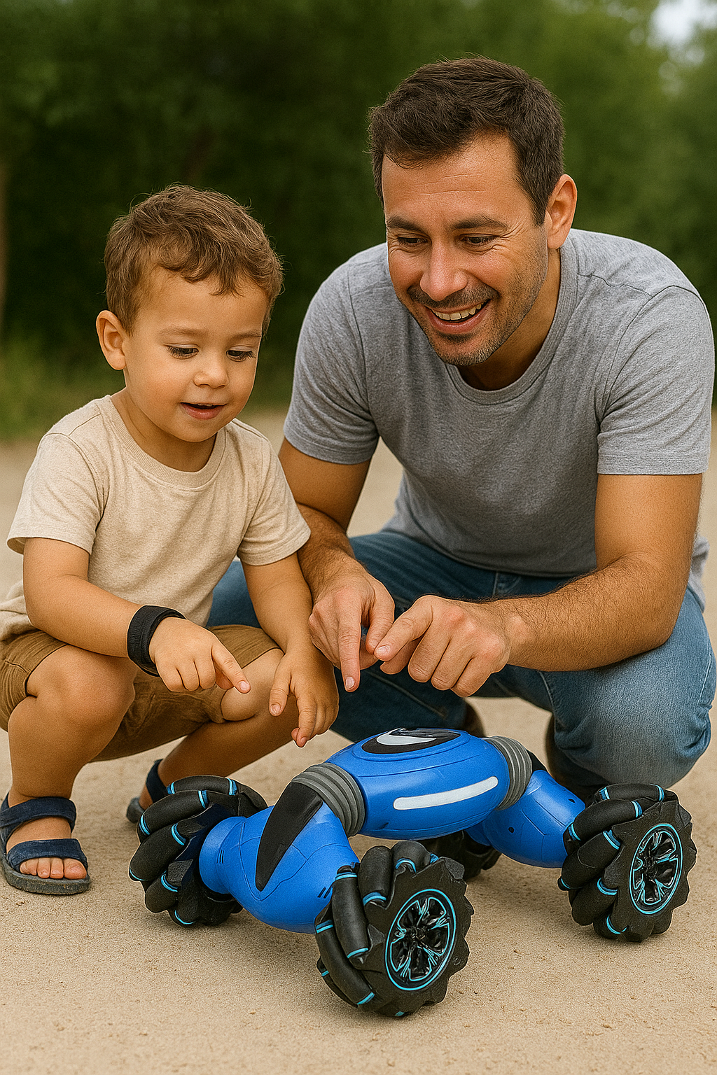 Com o Carrinho Acrobático MOKA 360°, a diversão é garantida para todas as idades. Equipado com controle por gestos tipo relógio, você guia o carrinho apenas com os movimentos da sua mão – uma experiência inovadora e impressionante.