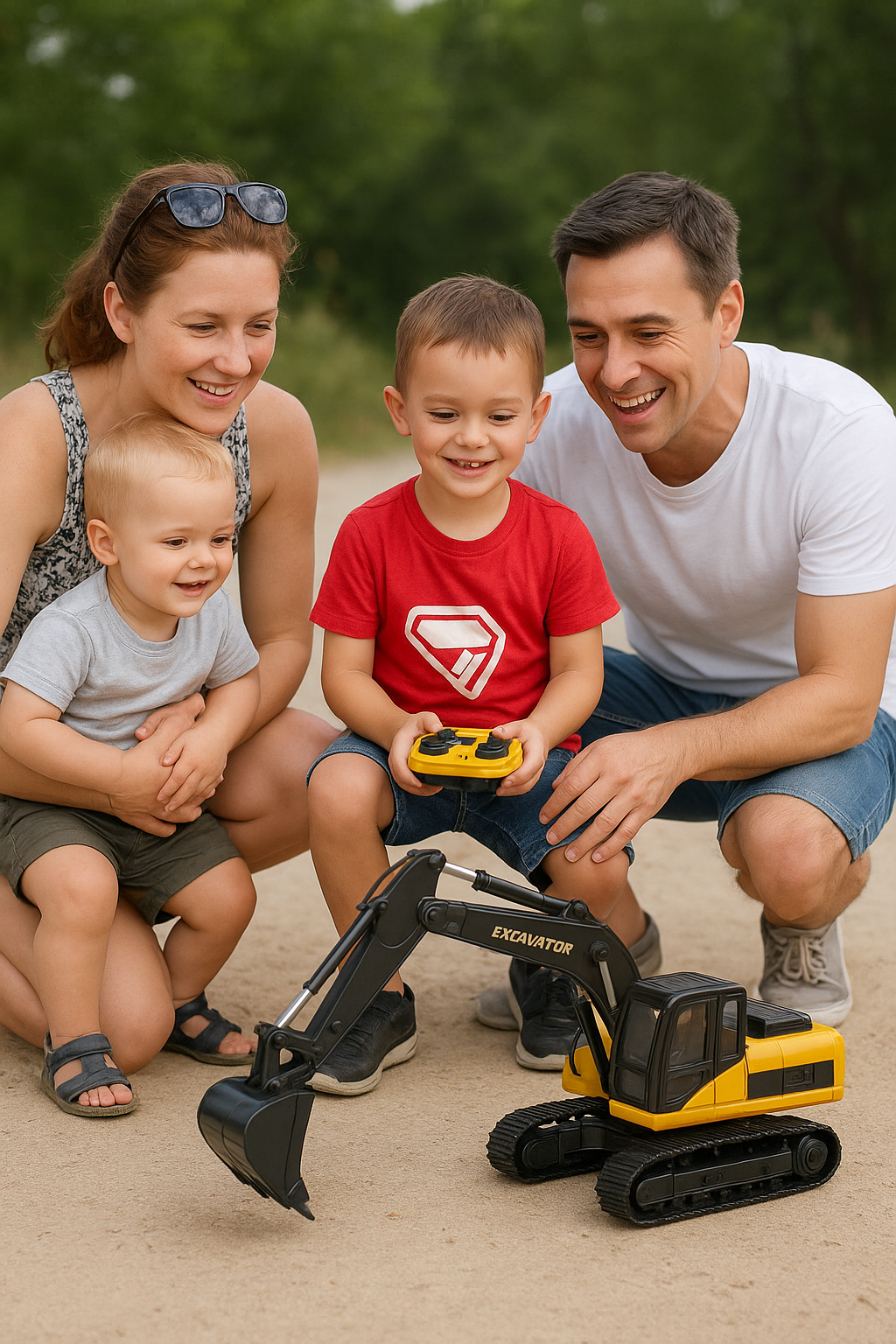 Com a Escavadeira de Controle Remoto 11CH, seu filho vai se sentir um engenheiro de verdade. Esse brinquedo incrível escava, levanta, transporta areia e até gira a cabine em 680° como uma escavadeira real.