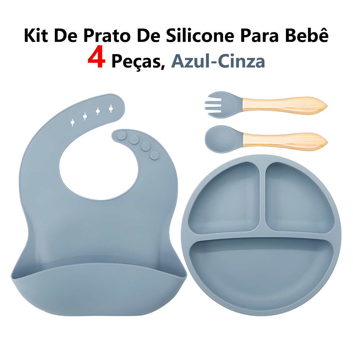 Kit Alimentação Infantil em Silicone com Divisória e Ventosa 4 Peças