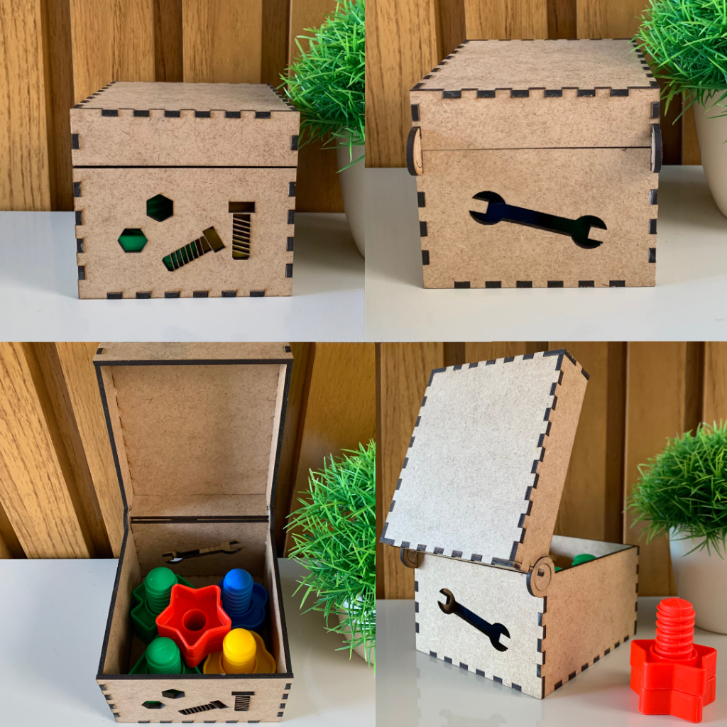 ✔ Kit 3: 5 peças (parafuso + porca) + estojo MDF
