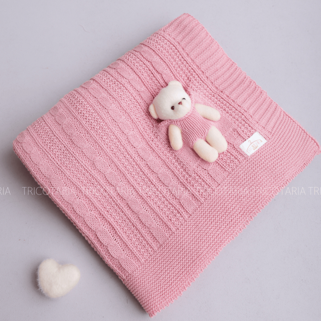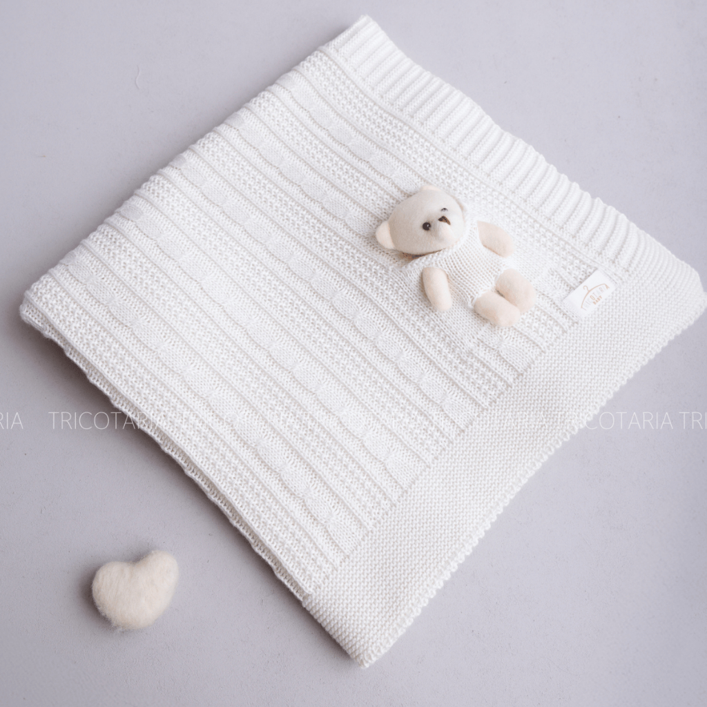 Encante-se com a delicadeza da nossa manta trançada com texturas em relevo e acabamento impecável. Um item cheio de charme e carinho, perfeito para momentos especiais como a saída da maternidade ou para completar o enxoval com elegância.