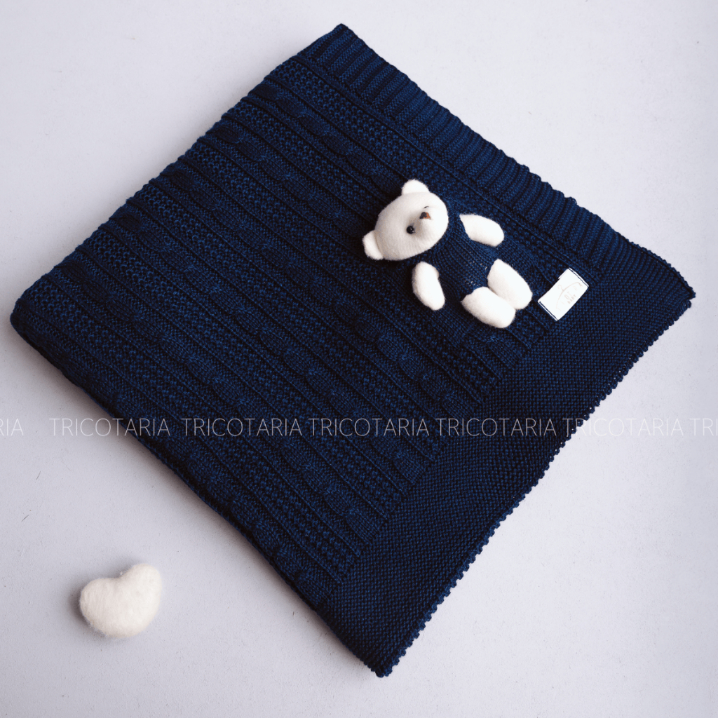 🧶 Manta Trançada com Ursinho Saída da Maternidade – Um Toque de Amor para o Enxoval do Seu Bebê 💙
