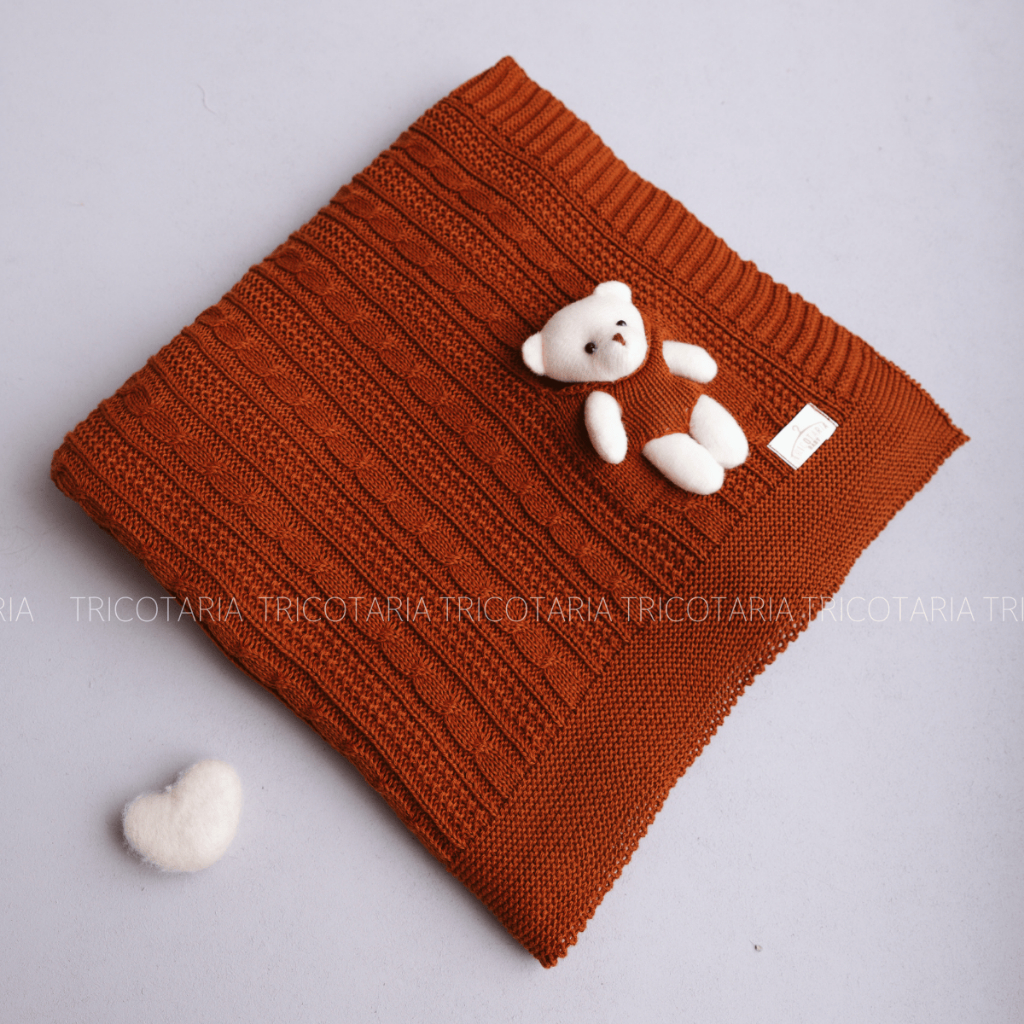 Acompanha um ursinho de pelúcia vestindo uma miniatura da própria manta, criando uma combinação adorável e exclusiva!