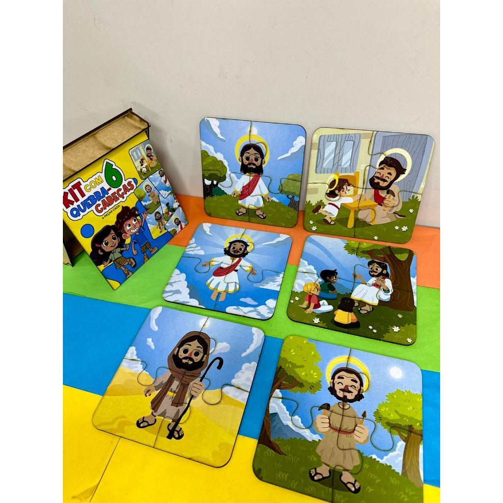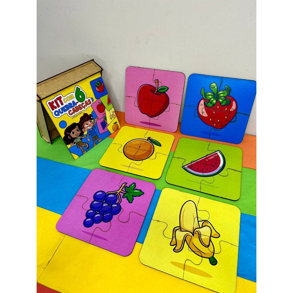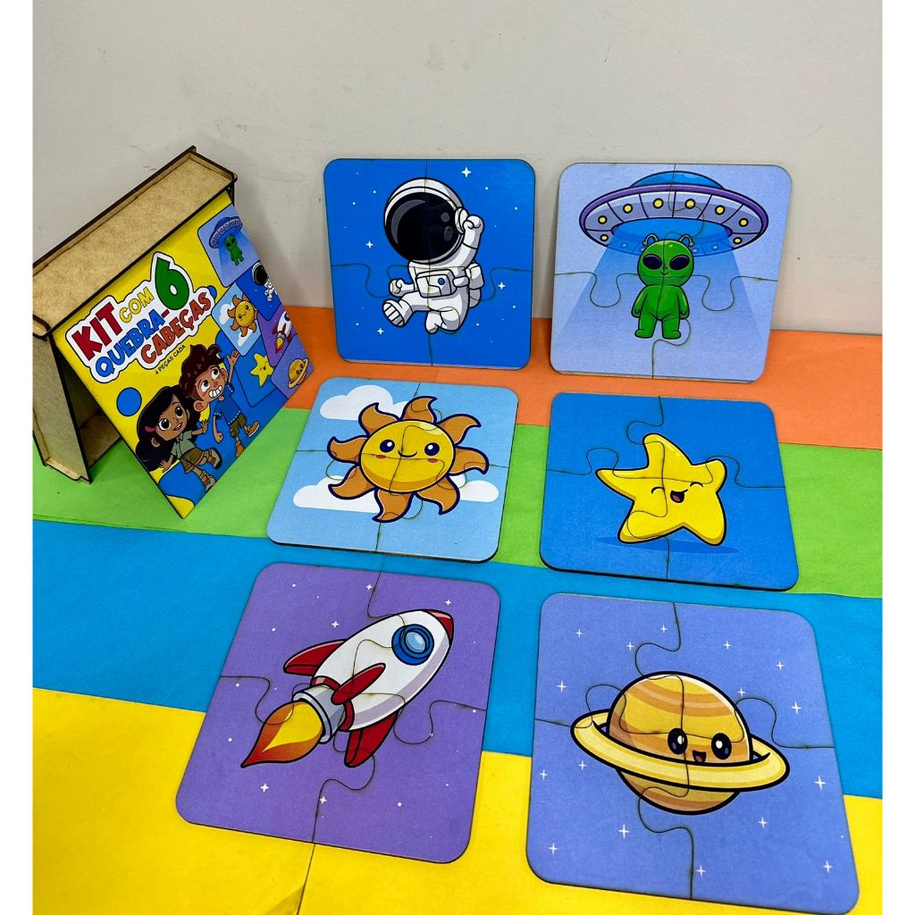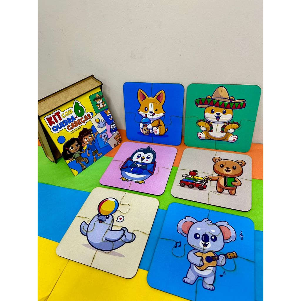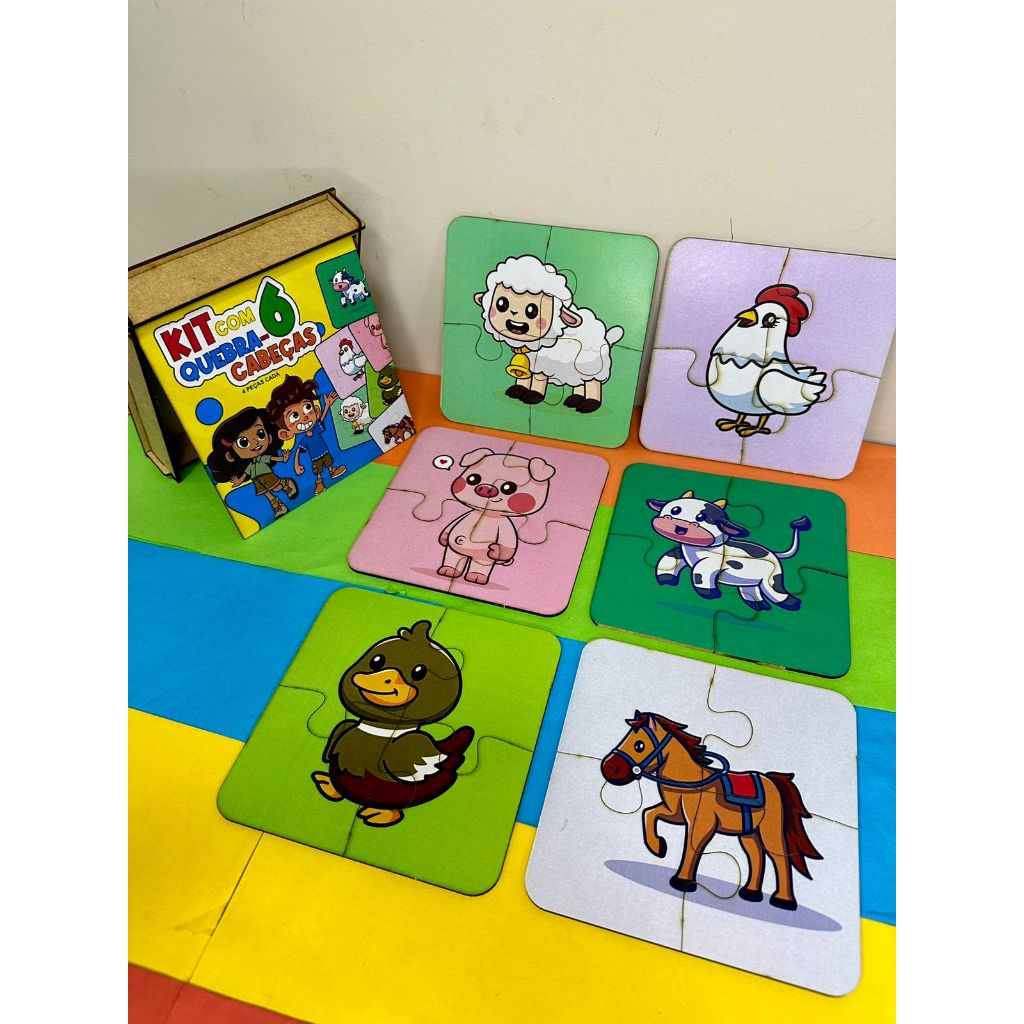 6 quebra-cabeças diferentes, com figuras coloridas e lúdicas