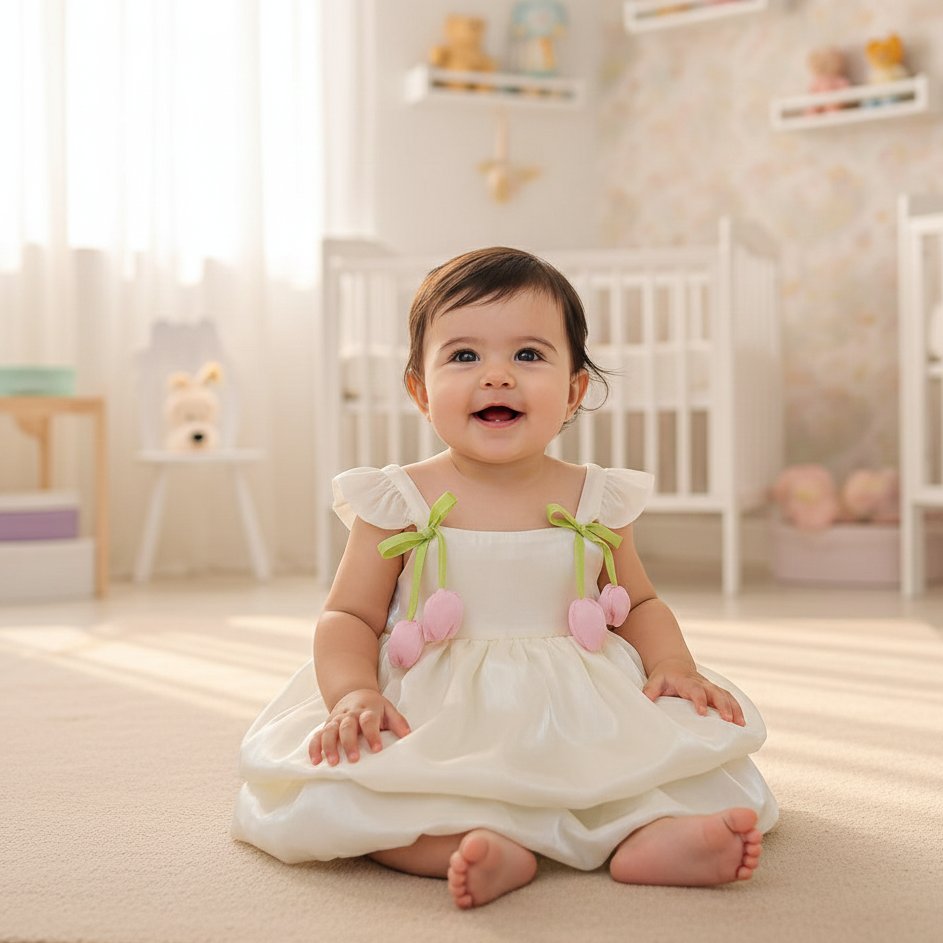 Deixe sua pequena ainda mais encantadora com o Vestido de Verão Tulipas. Com tecido leve e estampa charmosa de tulipas, ele é perfeito para os dias quentes, oferecendo conforto, maciez e liberdade para brincar, passear e tirar fotos lindas!
